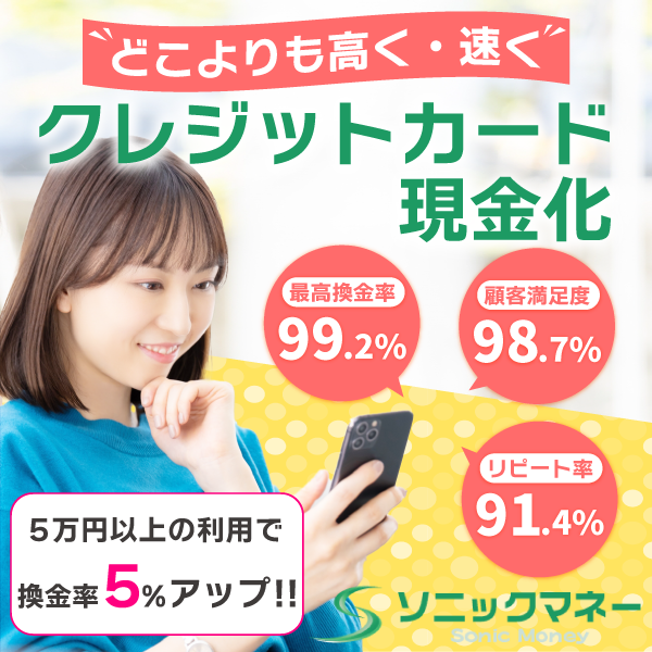 今まで利用したことのある業者より換金率が高くてびっくりしました。今後はソニックマネーを利用します!